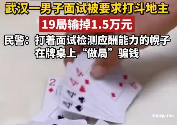 然而,还是年轻了,因为今天的一条关于求职的热搜,直接震碎了三观,碎一地捡不起来那种。热搜的话题是:「男子面试被要求打斗地主输掉1.5万元」