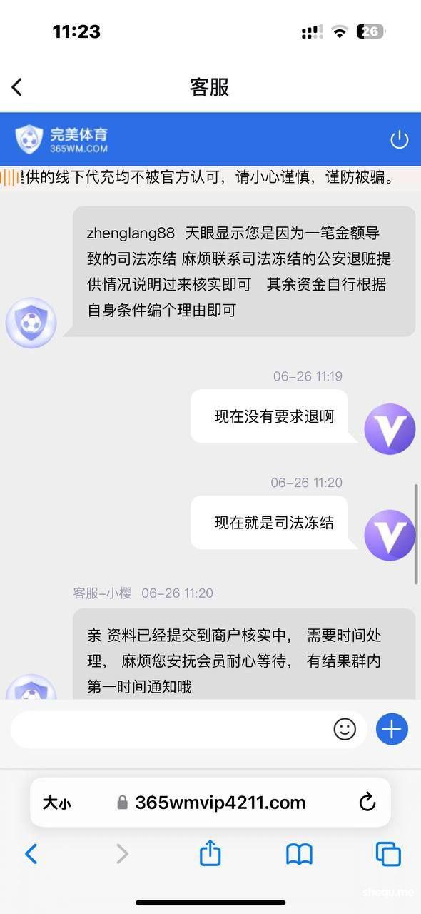 完美v7帐号zhenlang88。 完美体育我提款给我打黑款把我银行卡余额7w全部冻结。说司法冻结给赔偿要证明,我开了证明要求我现在退赃。公安局难道是我家开的吗?希望完美高层看到帮我解决这个问题