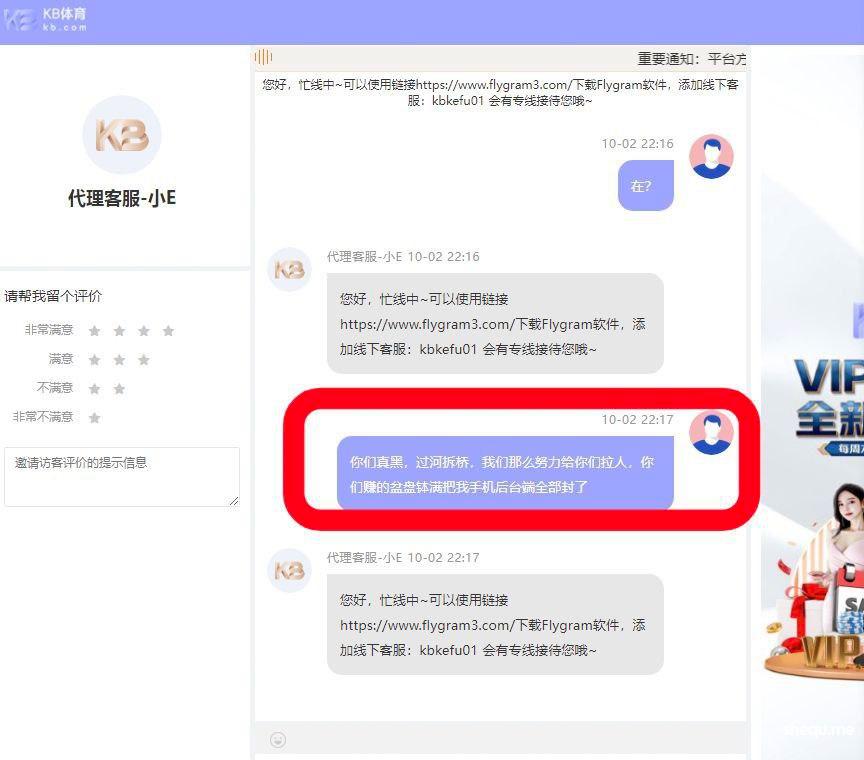 德国籍法兰克福人,KB体育 合营代码3319198,前几年因为生活压力太大,我一直非常努力在帮KB体育推台子,天道酬勤发展下线人数有704人,前两年佣金确实每个月都给了,但是从欧洲杯结束之后,KB体育平台代理客服全部失联,佣金从7月份以后就一分没有发过,但是平台每天还在正常运营,我不奢求前面几个月的佣金能够给我。我只希望KB体育的领导大哥能够把9月份的佣金发给我,我现在挺难的,今年我生了场大病,所以没有精力再去推台子,希望KB体育领导层不要卸磨杀驴过河拆桥。