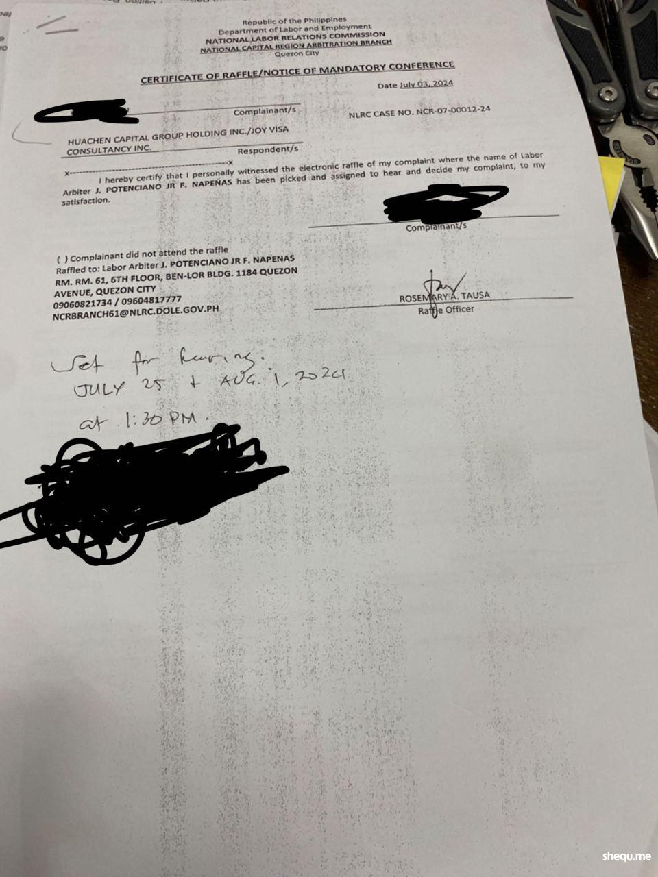 谢谢您们给了我这次机会,去菲律宾国家劳动关系委员会总部National Labor Relations Commission - Main Office,简称NLRC(隶属于菲律宾劳工和就业部 DOLE)投诉你们机会,让我有了一次 通过寻求法律途径维护自身合法权利的经历和经验!
